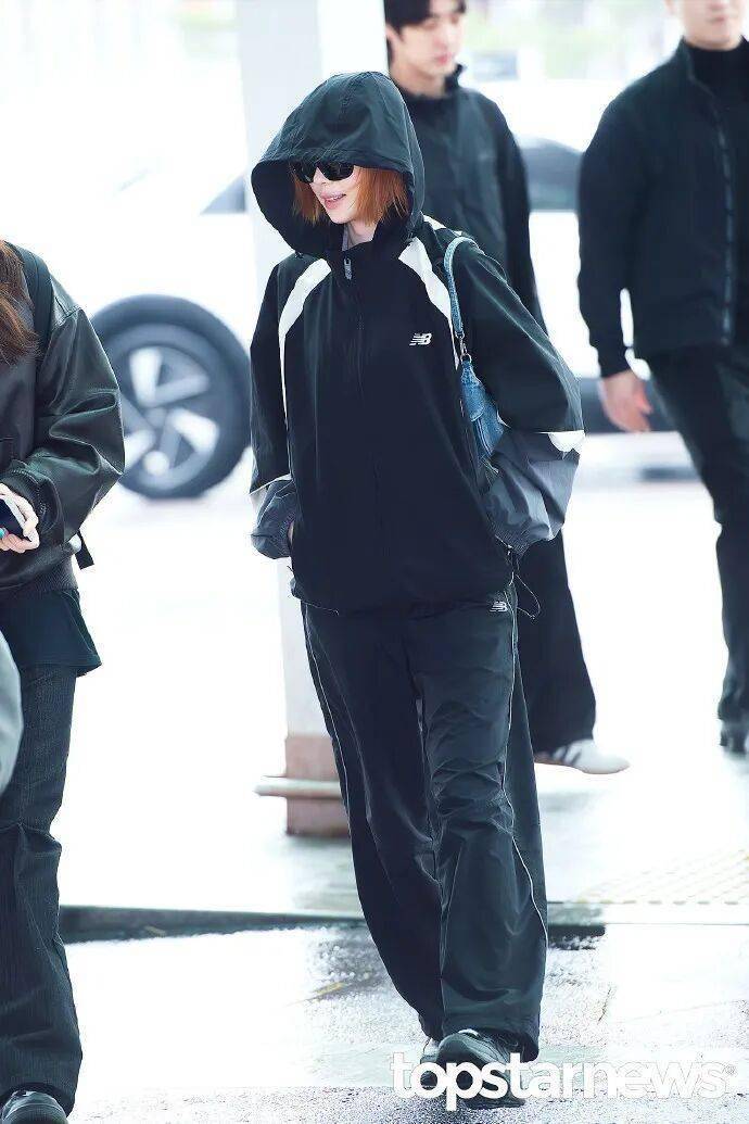 金玟庭此次以橘色长发搭配墨镜、简约休闲装现身机场,发色与夏日氛围相得益彰。